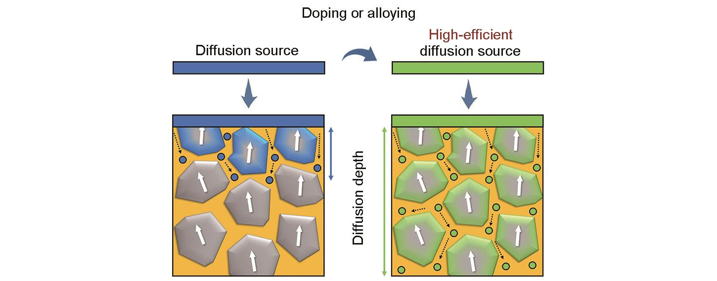 | Technológia difúzie hraníc zŕn s nízkymi ťažkými vzácnymi zeminami zahŕňa technológiu difúzie magnetrónového naprašovania a difúznu technológiu sietotlače. Aplikácia tejto techniky, ktorá distribuuje prvky ťažkých vzácnych zemín s nízkym obsahom pozdĺž hraníc zŕn, zlepšuje defekty na hranici zŕn a dosahuje výrazné zvýšenie Hcj. |